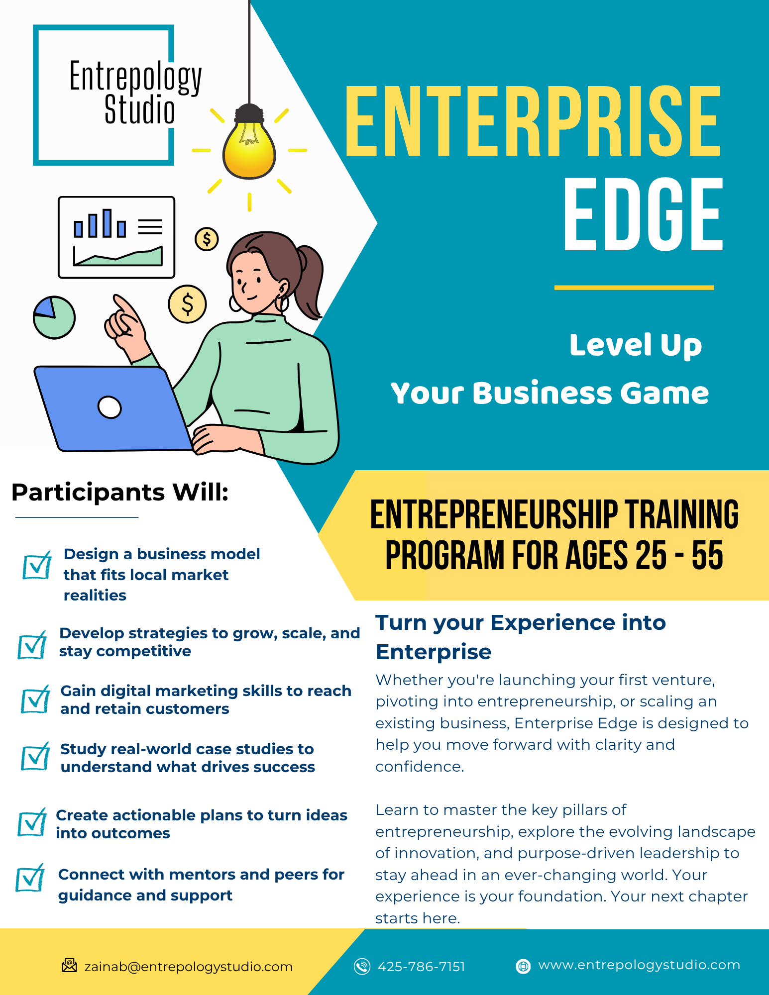 At Entrepology Studio, Zainab continues to build bridges between global best practices and local innovation—helping communities turn entrepreneurial potential into tangible, sustainable impact. Zainab's work is fueled by the belief that entrepreneurship is more than business—it's a vehicle for self-discovery, problem-solving, and social change.
